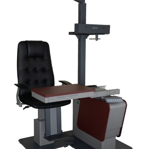 Ophthalmology workstation with an ergonomic chair and specialized desk