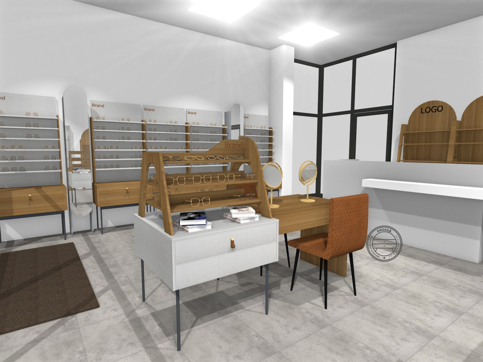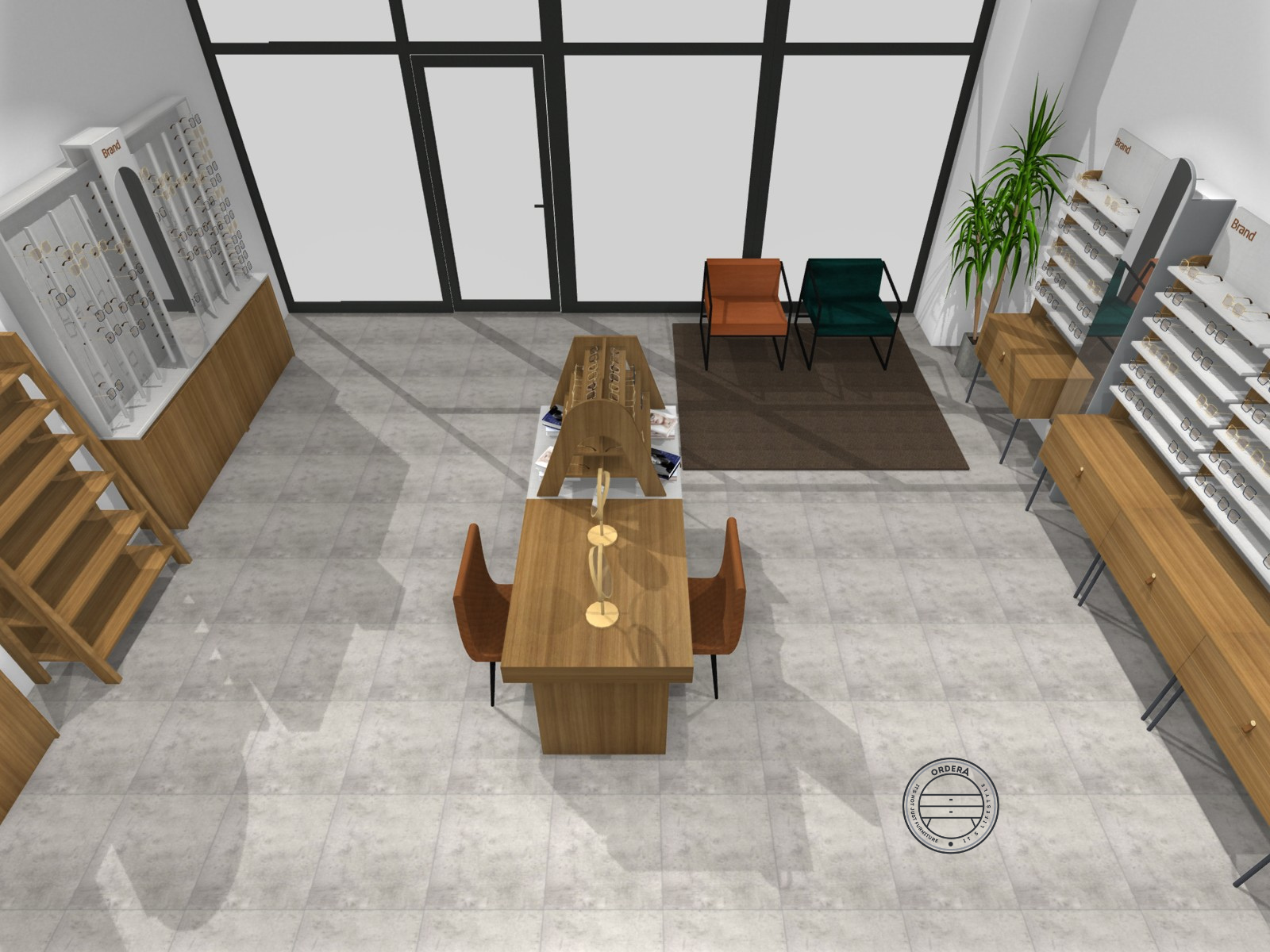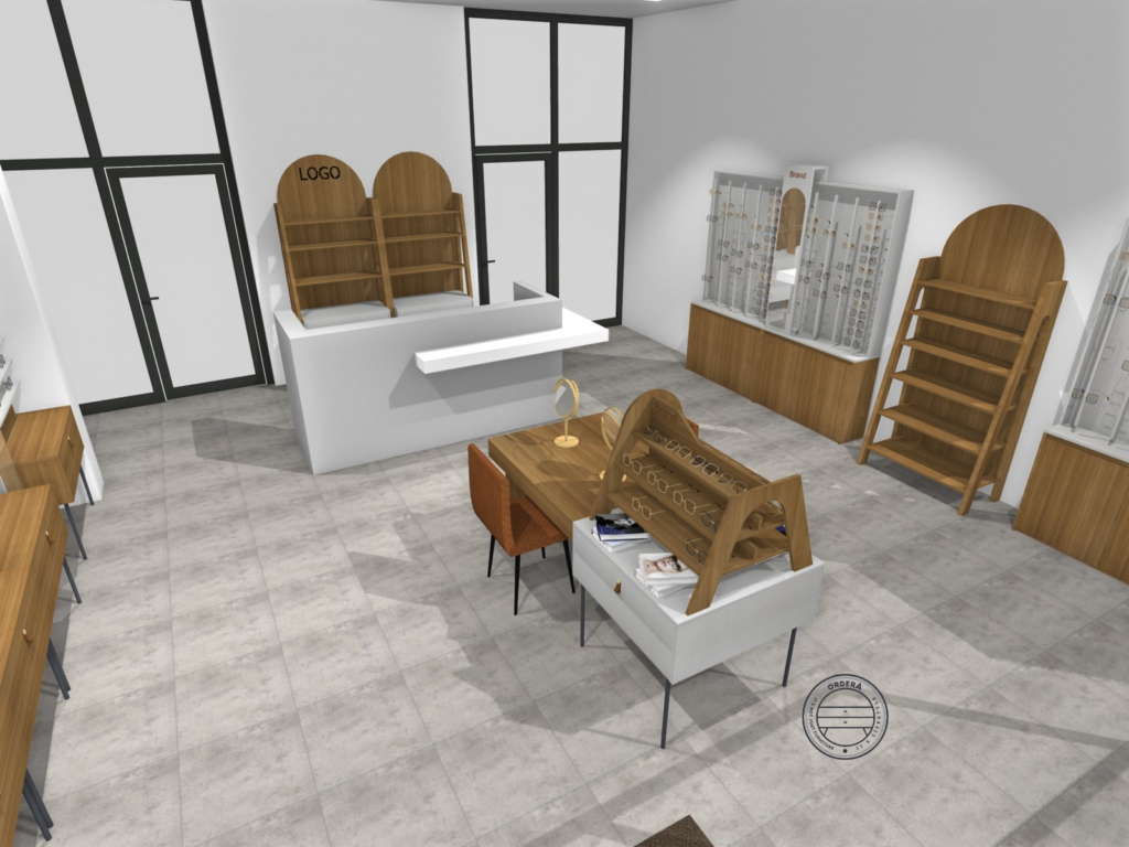 Concept 01 combines structured display areas, integrated consultation zones and optimized customer movement. The balance between warm materials and neutral tones creates a welcoming yet professional atmosphere.