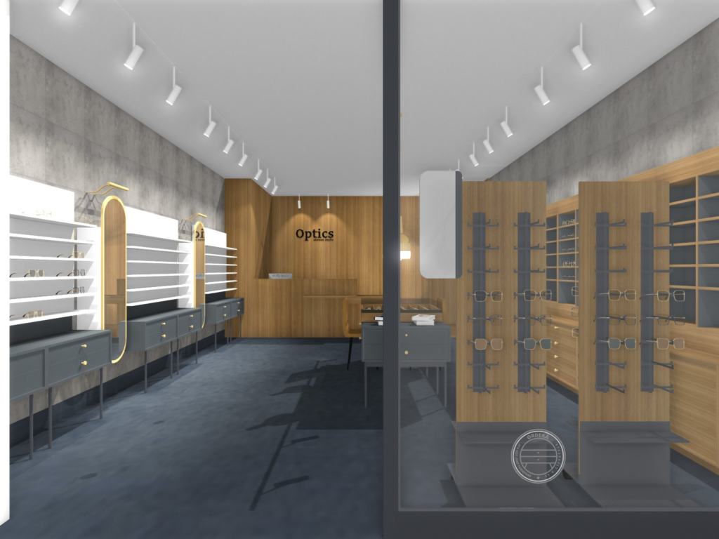 A warmer optical concept designed to enhance the customer journey. Natural materials, defined zones and carefully structured product presentation create a comfortable and premium retail atmosphere.