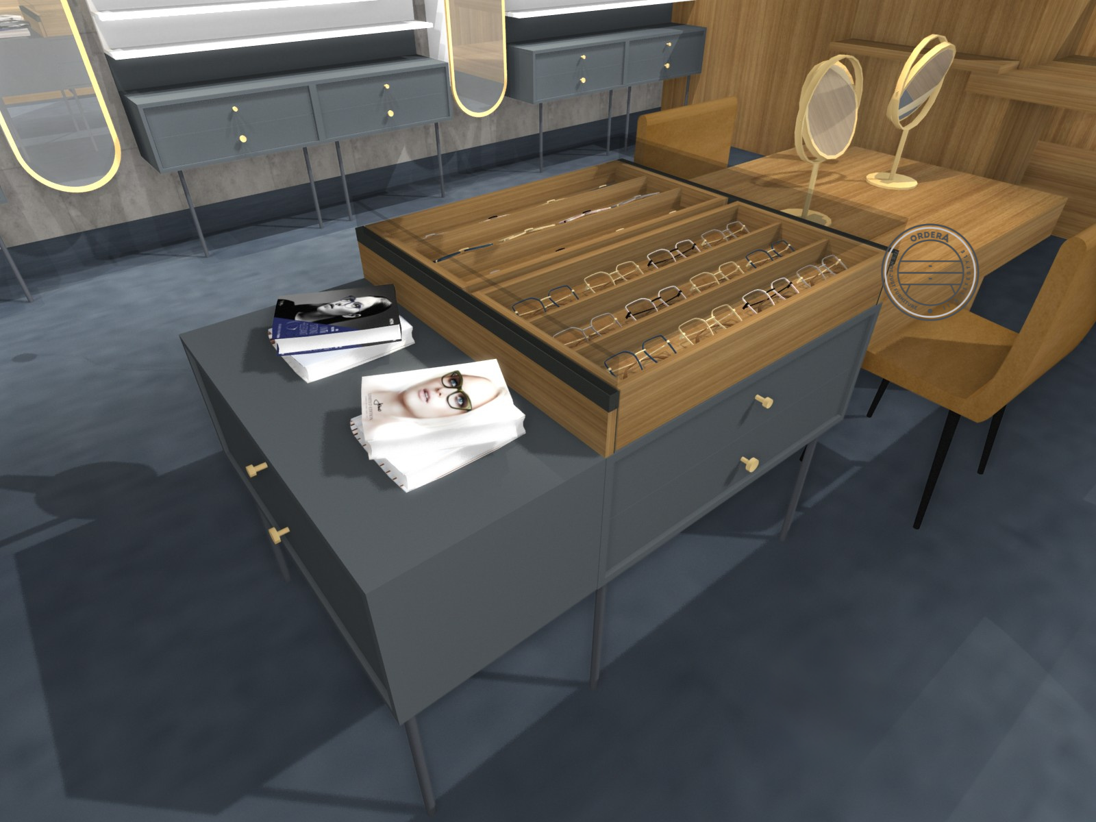 Concept 02 is built on a modular furniture platform, this concept allows scalable layouts — from compact optical stores to larger retail environments.