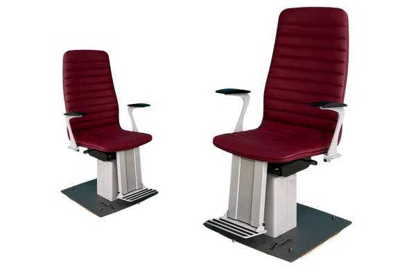 An electrical elevating chair, also included in refraction units, is a motorized chair used for patient seating during ophthalmic examinations. It can be adjusted electronically for height, tilt, and recline to ensure the patient is in the most comfortable and appropriate position for different types of examinations and treatments. The electrical adjustments allow for smooth and precise positioning, which is crucial for maintaining patient comfort and ensuring the accuracy of diagnostic procedures.